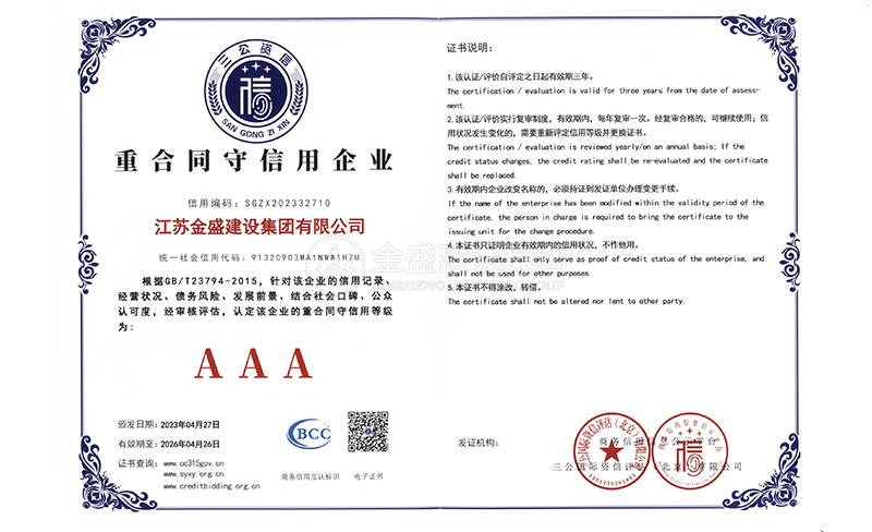 • 3A級(jí)資信等級(jí)證書(shū)